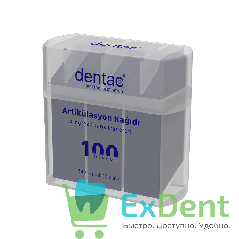 Артикуляционная бумага прямая, синяя Dentac (100 мкм х 300 шт)