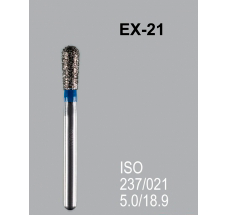 Алмазный бор Mani капля EX-21 (ISO 237/021) синий. Бор большего диаметра используется для препарирования окклюзионных поверхностей при подготовке моляров и премоляров под коронки. Бор меньшего диаметра используется для формирования боковых стенок полостей I, II и, в некоторых случаях, III класса. При этом одновременно формируется поднутрение в области дня кариозной полости (классический «ласточкин хвост»)