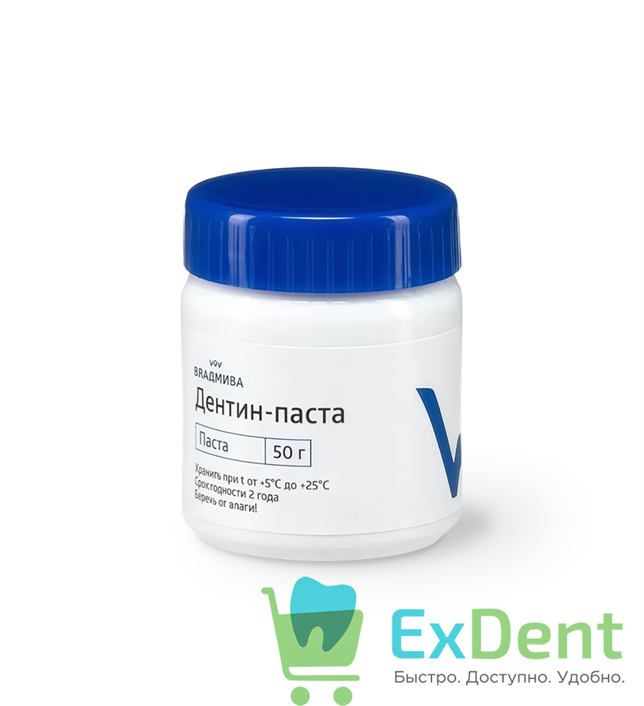 Хранить Дентин-пасту в плотно закрытой баночке в сухом месте при температуре от +4°C до +25°C. Не допускать попадания влаги — это ухудшает свойства материала и может привести к его преждевременной непригодности[reference:25]. Срок годности: 2 года с даты производства[reference:26].