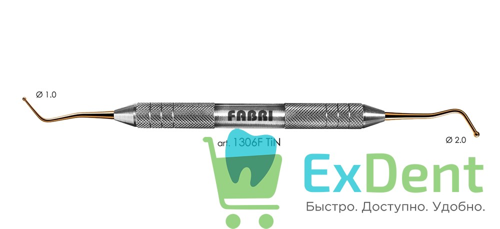 art: 1306F TiN - доукладчик FABRI серии GOLD F - основная серия инструментов FABRI. Легкая эргономичная ручка диаметром 10мм защитит от карпального синдрома. Покрытие нитрид-титана (TiN) значительно снижает прилипание композитов к рабочим частям и делает повержность инструментов более прочной. Вес: ~26 г. Стерилизация: tмах-1800С