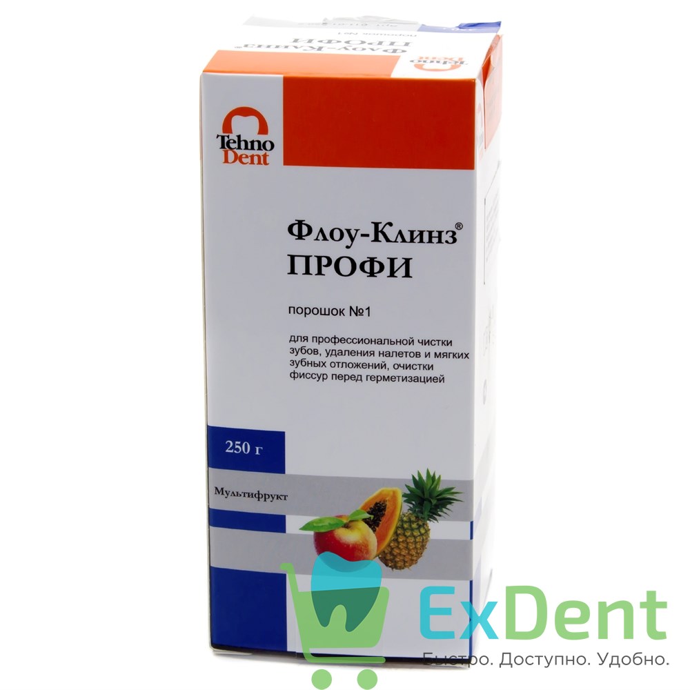 Флоу-Клинз ПРОФИ мультифрукт - порошок для предварительной чистки зубов (250 г)