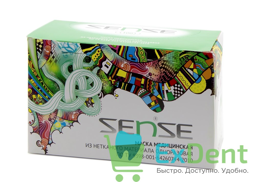 Маски медицинские голубые Sense, лицевые, защитные, трехслойные (100 шт)