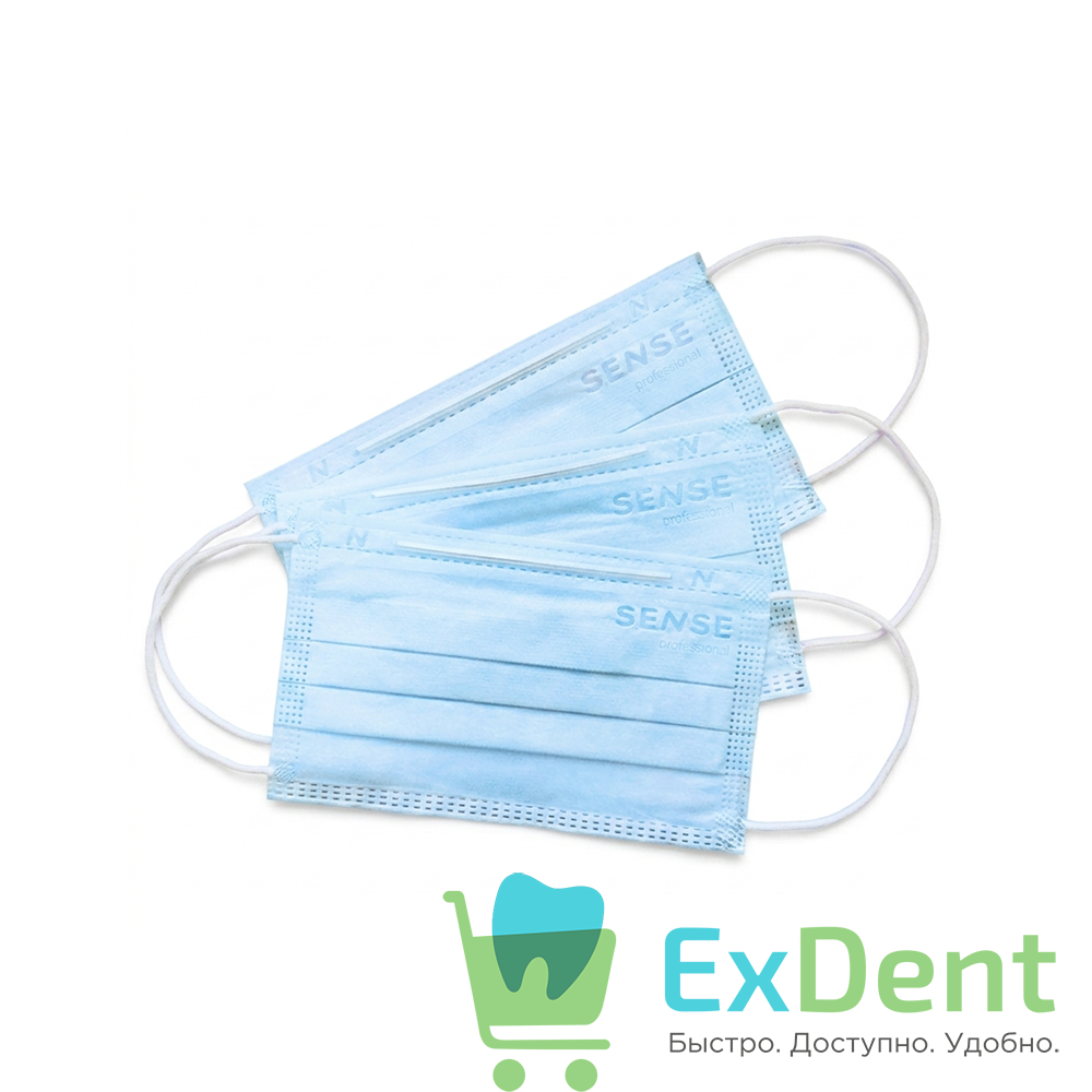 Маски медицинские голубые Sense professional, лицевые, защитные, трехслойные (50 шт)