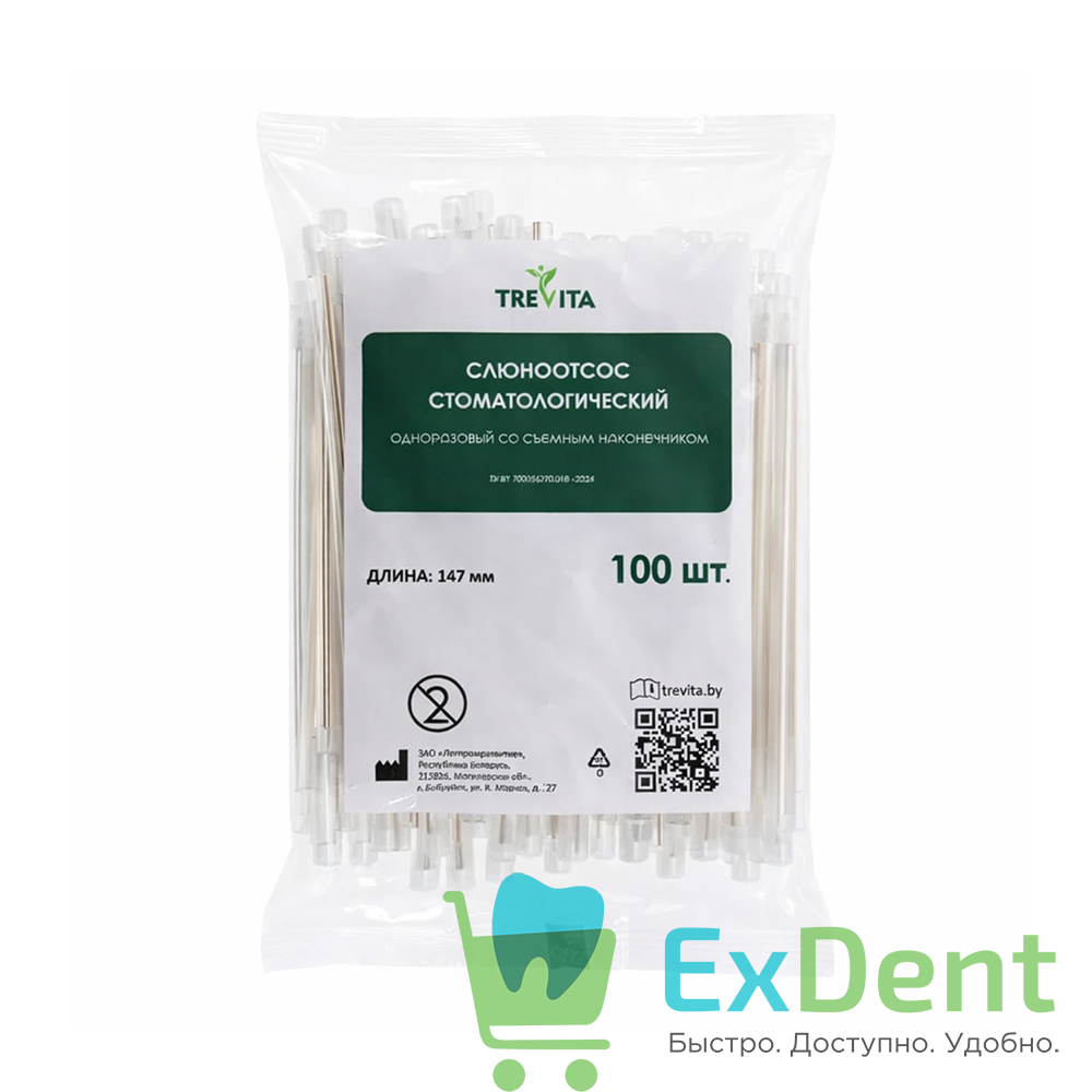 Гибкие бесцветные наконечники для слюноотсосов TREVITA — это одноразовые стоматологические эвакуаторы, предназначенные для эффективного удаления слюны, крови, воды и охлаждающей жидкости из полости рта во время лечебных и профилактических процедур. Изделия изготовлены из нетоксичного медицинского пластика (ПВХ), обладают высокой гибкостью, что позволяет комфортно размещать их в любой зоне полости рта, не травмируя слизистую оболочку. Упаковка содержит 100 штук, что делает набор экономичным решением для стоматологических клиник, косметологических кабинетов и лабораторий. Продукция производится под белорусским брендом TREVITA (ЗАО «Легпромразвитие», г. Бобруйск), запущенным в 2023 году в рамках программы импортозамещения, и полностью сертифицирована для медицинского применения.