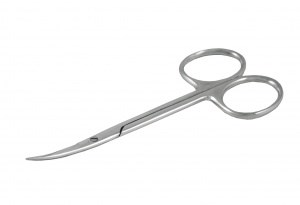 Ножницы глазные – это стандартные, остроконечные ножницы, визуально напоминающие маникюрные. Общая длина ножниц 113 мм, лезвия бывают прямые и изогнутые по плоскости. Данные ножницы используют при выполнении деликатной работы (работа на придаточных органах глаза, уретростомия и т.д.).