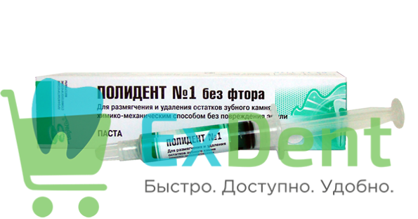 Полидент №1 –для размягчения и удаления зубного камня без повреждения эмали. Рекомендуется для лечения дисколорита твердых тканей зуба, для курильщиков и больных литиазом.