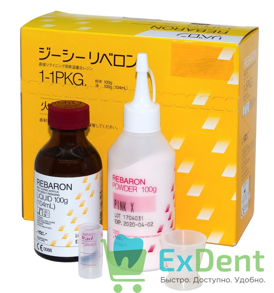 GC Rebaron (Ребарон), 1-1 pkg-самотвердеющая пластмасса для перебазировки (100 г порошка, 100 г жидкости)