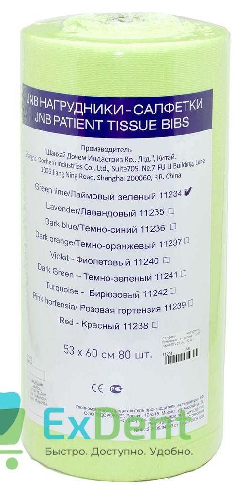 Салфетки (нагрудники) бумажные в рулоне, JNB лайм 60 х 53 см, (80 шт)