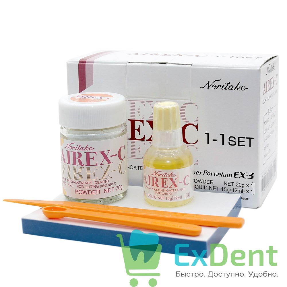 AIREX-C Стоматологический стеклополиалкеноатный (стеклоиномерный) цемент для пломбировочных прокладок и фиксации зубных протезов Хорошо известно, что стеклоиномерный цементы обладают высокой биосовместимостью. AIREX-C – это стеклоиномерный цемент, специально разработанный фирмой Норитаке: его отличительными особенностями являются: повышенная прочность соединения с твредыми тканями зуба, очень высокая долговечность и простота работы с материалом.
