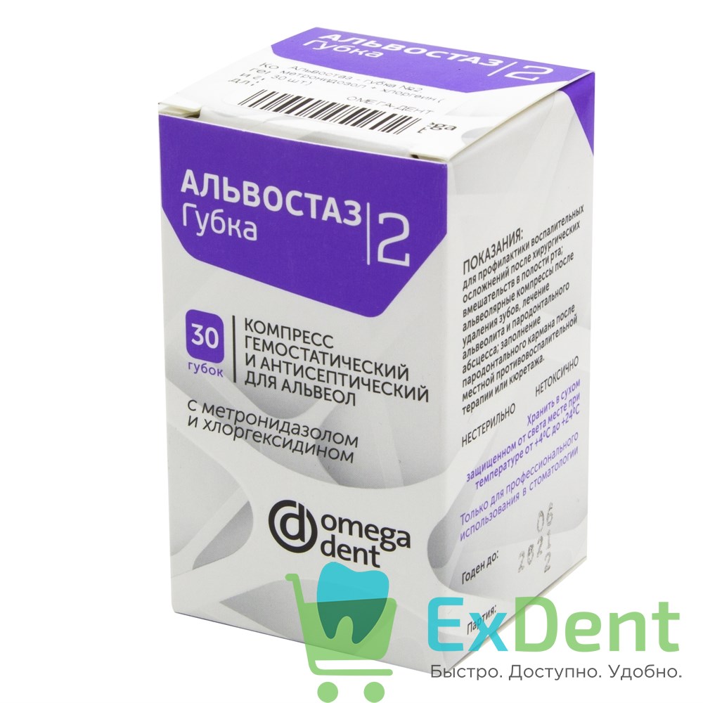 Альвостаз - губка №2, метронидозол + хлоргеин ( 30 шт)