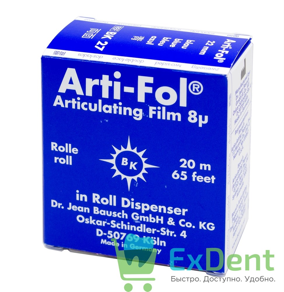 Артикуляционная фольга, синяя Bausch (8 мкм, 20 м х 22 мм) двухстороняя