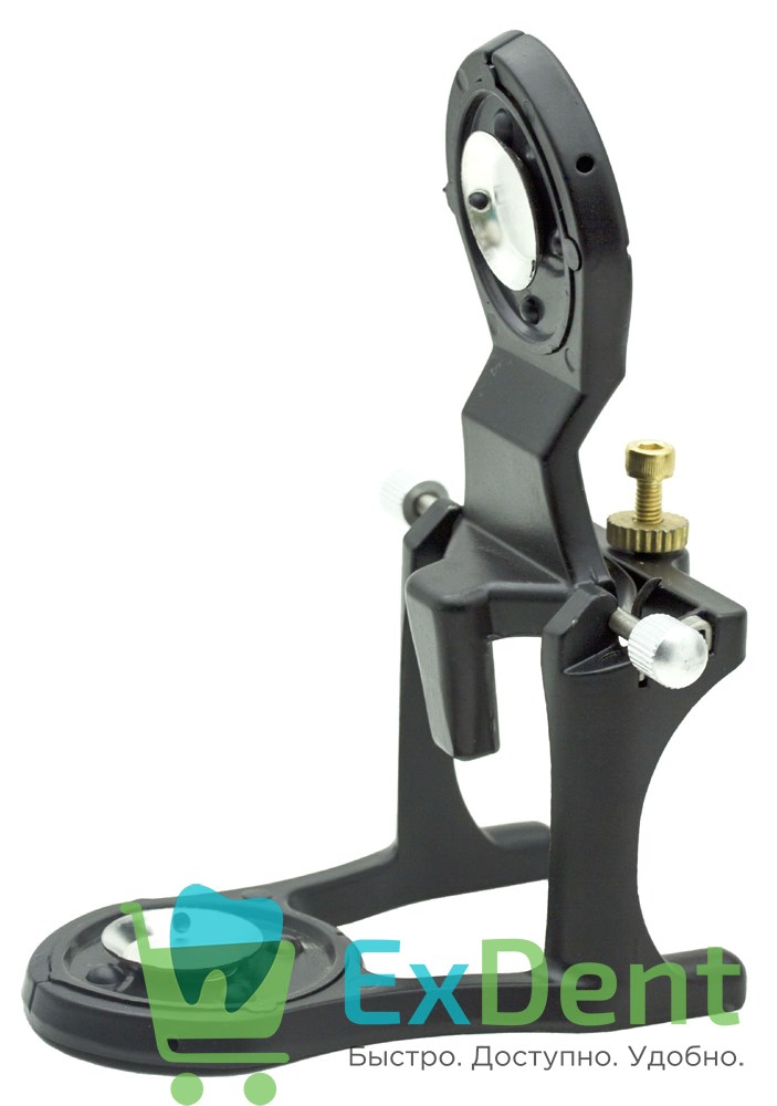 У данного артикулятора магнитная фиксация модели с использованием металлических монтажных пластин. Применяется для установки моделей зубных протезов и имитации вертикальных движений челюстей.