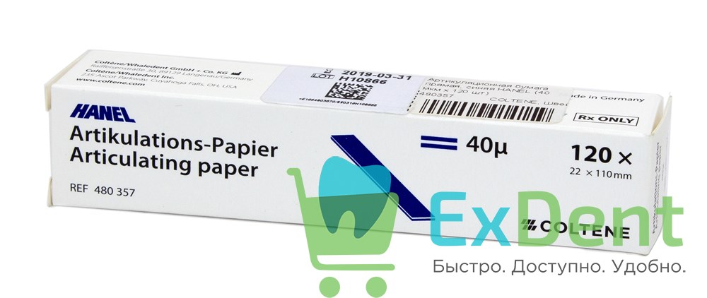 Артикуляционная бумага прямая, синяя HANEL (40 мкм х 120 шт)