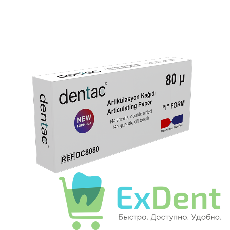 Артикуляционная бумага прямая, синяя / красная Dentac (80 мкм х 144 шт)