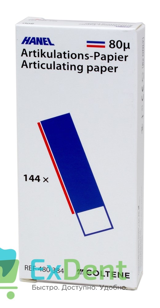 Артикуляционная бумага прямая, синяя / красная HANEL (80 мкм х 144 шт)