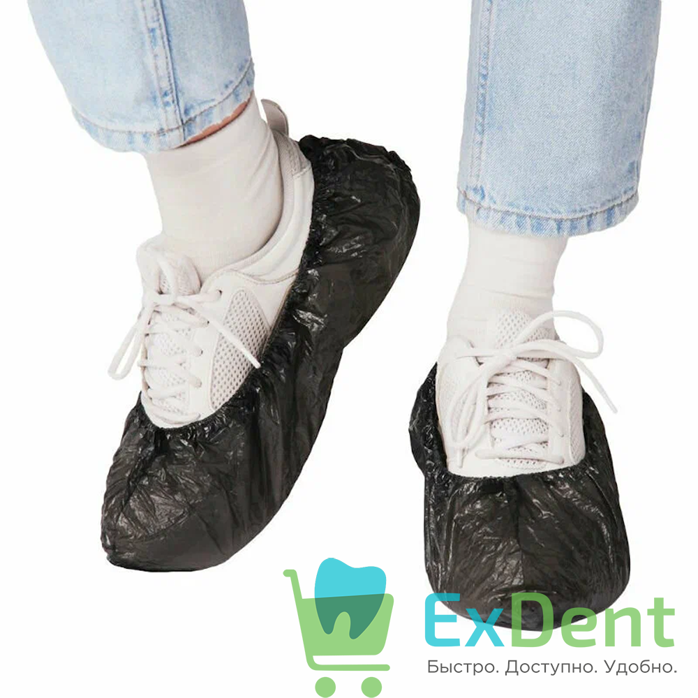 Бахилы прочные Элегрин Экстра Плюс, черные с двойной резинкой (3.5 г., 15 мкм) (100 шт)