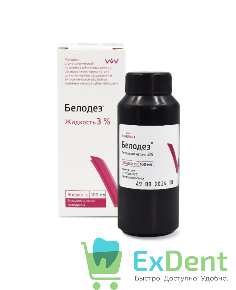 Белодез 3% (гипохлорит Na) (100 мл)- для антисептической обработки корневых каналов