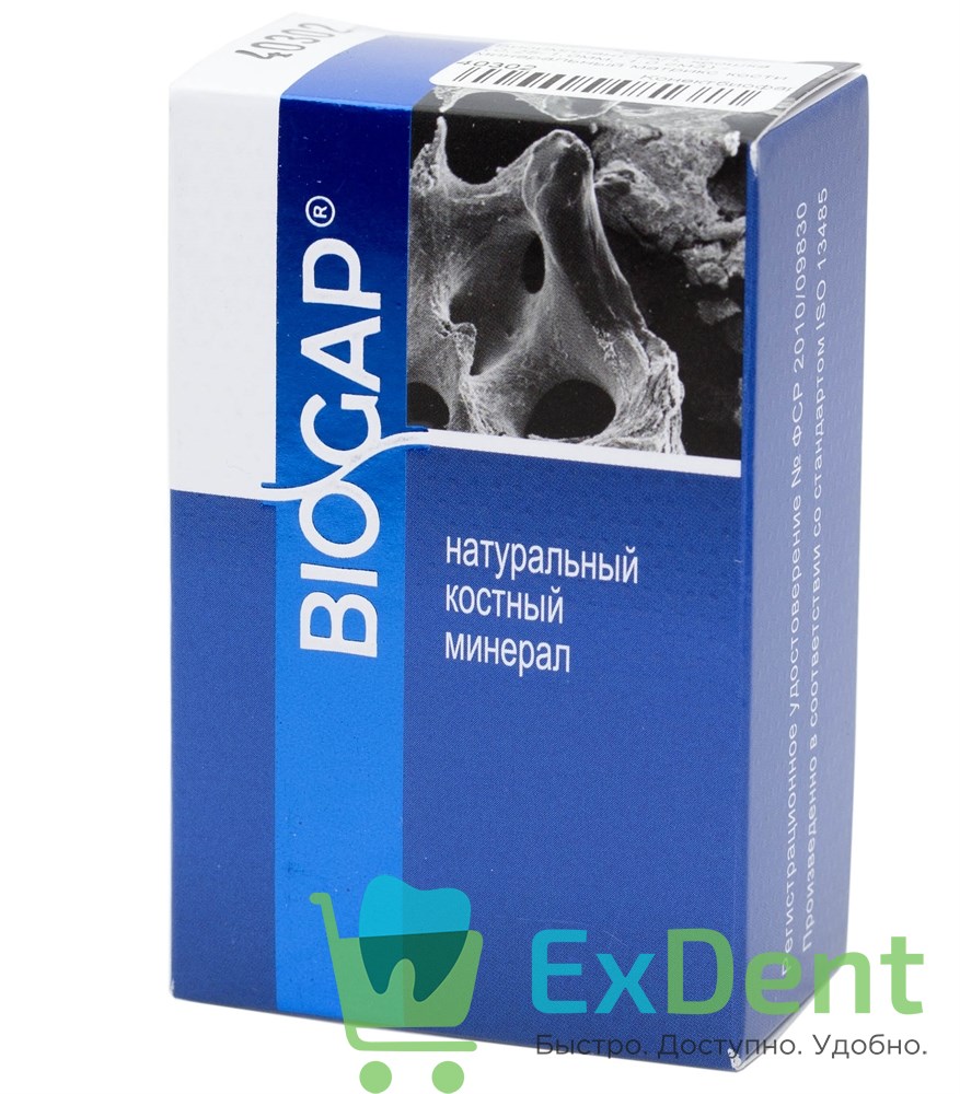 Остеокондуктивный пористый материал, имеющий макро и микро структуру схожую с человеческой костью. За счет отсутствия антигенности и имуногенности материал характеризуется высокой биосовместимостью с костной тканью человека. Пористая структура надежно поддерживает объем имплантируемого участка, под воздействием остеокластов и остеобластов облегчает формирование образования новой кости. При этом является протектором для прорастания эпителия.