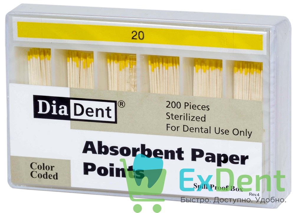 Бумажные штифты 02 №20 DiaDent для удаления влаги в канале (200 шт)