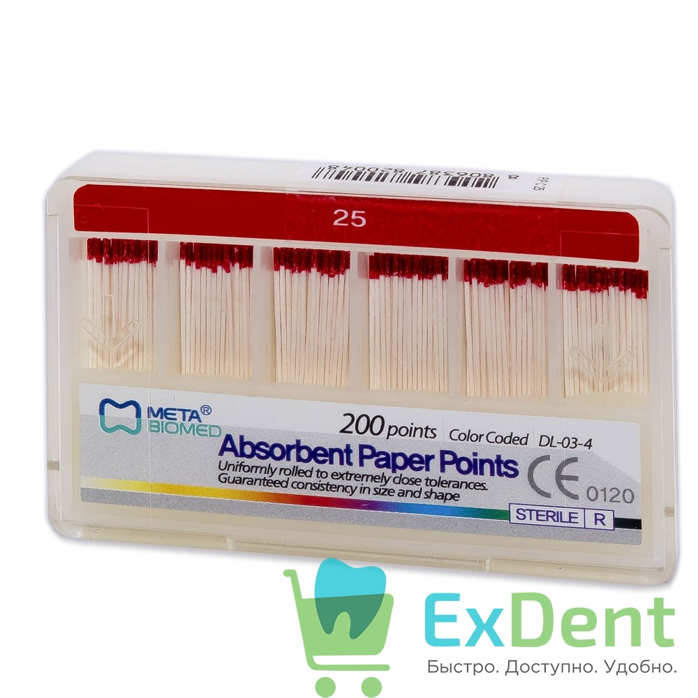 Бумажные штифты 02 №25 Meta - для удаления влаги в канале (200 шт)