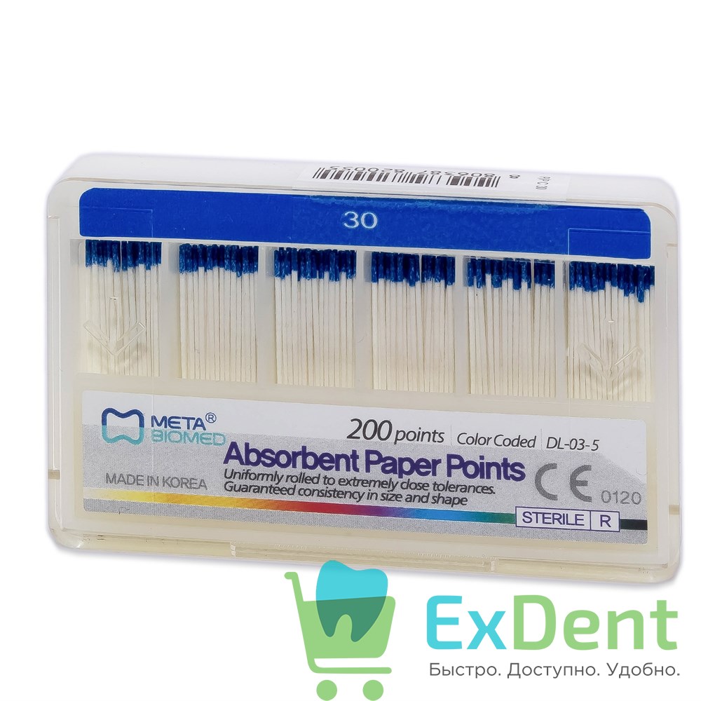 Бумажные штифты 02 №30 Meta - для удаления влаги в канале (200 шт)
