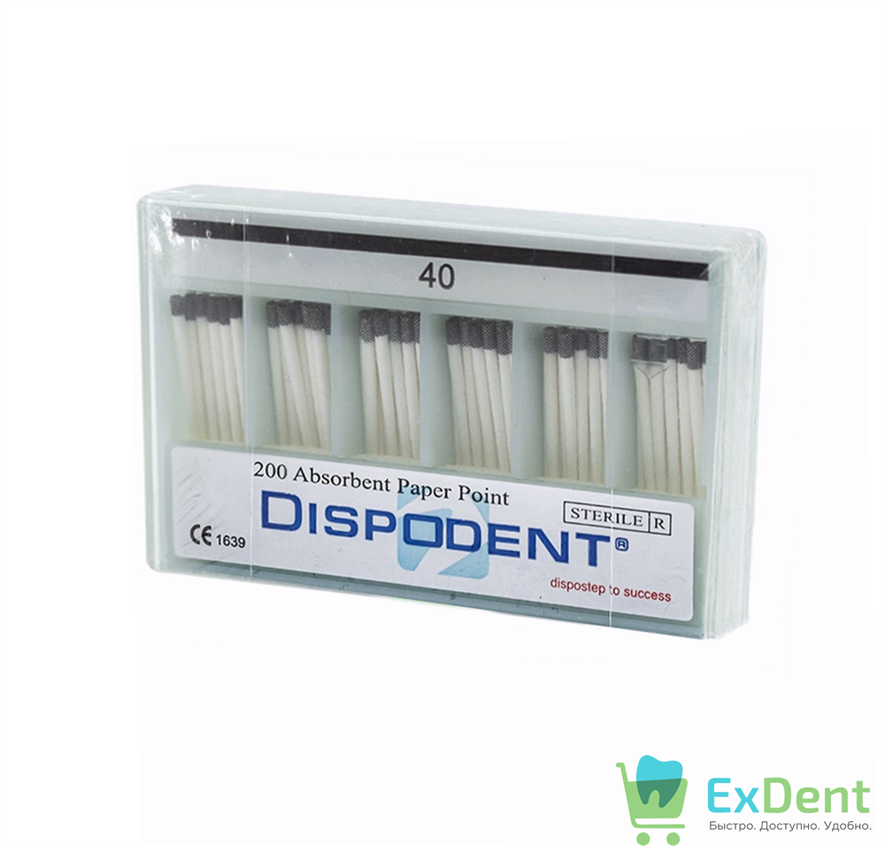 Бумажные штифты 02 №40 Dispodent - для удаления влаги в канале (200 шт)