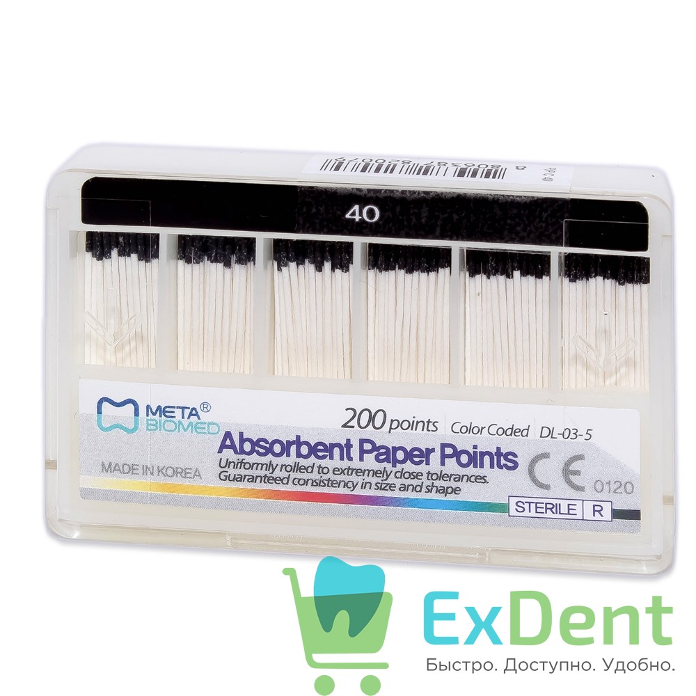 Бумажные штифты 02 №40 Meta - для удаления влаги в канале (200 шт)