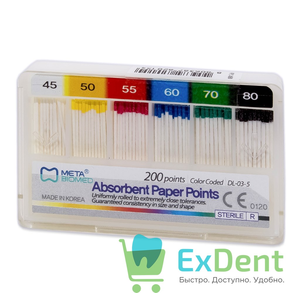 Бумажные штифты 02 №45-80 Meta - для удаления влаги в канале (200 шт)