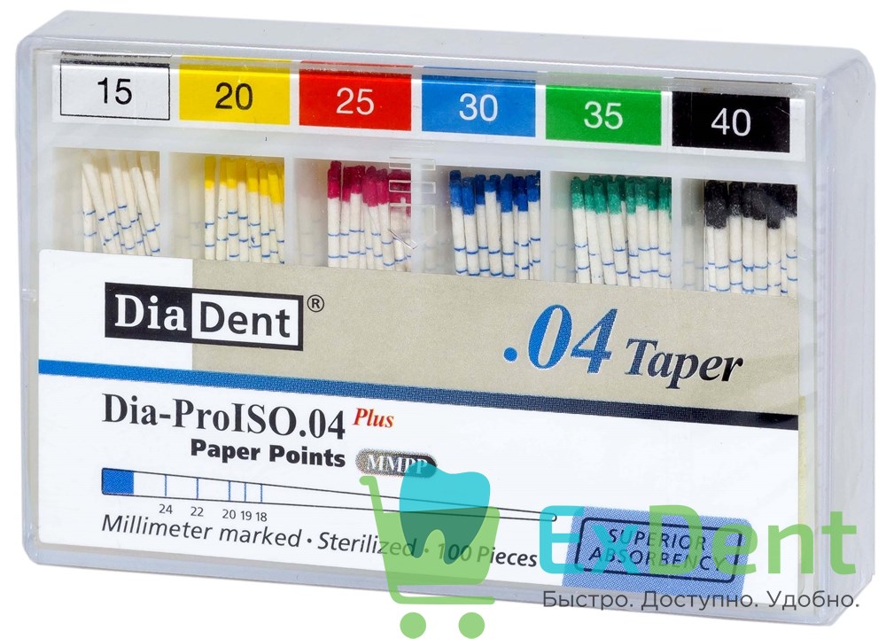 Бумажные штифты 04 №15-40 DiaDent для удаления влаги в канале (100 шт)