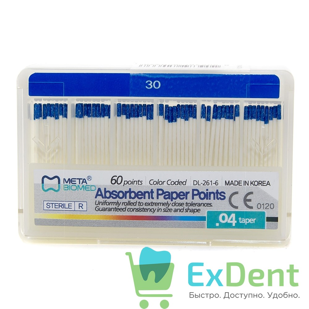 Бумажные штифты 04 №30 Meta - для удаления влаги в канале (60 шт)