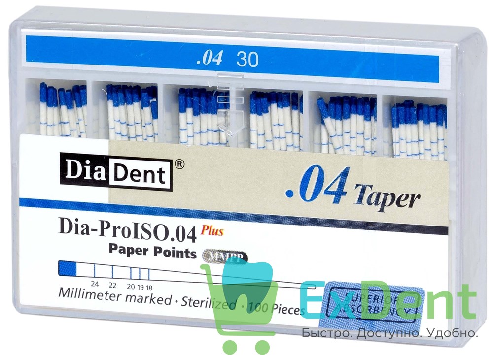 Бумажные штифты 04 №30 DiaDent для удаления влаги в канале (100 шт)