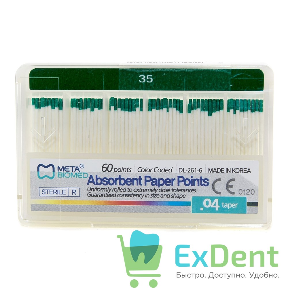 Бумажные штифты 04 №35 Meta - для удаления влаги в канале (60 шт)