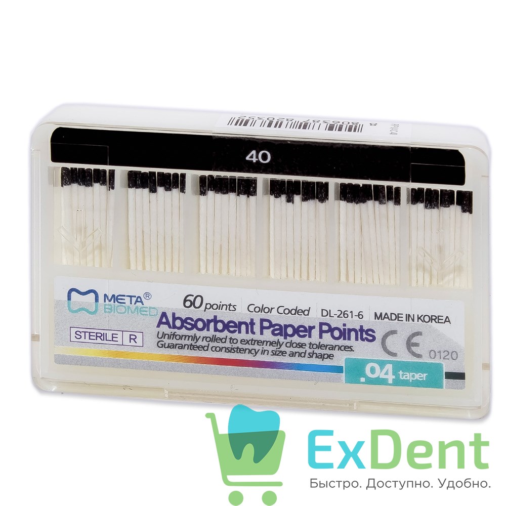 Бумажные штифты 04 №40 Meta - для удаления влаги в канале (60 шт)