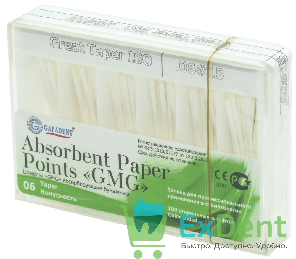 Штифты GMG бумажные абсорбирующие бумажные штифты для подготовки (высушивания) корневых каналов зубов при эндодонтическом лечении.