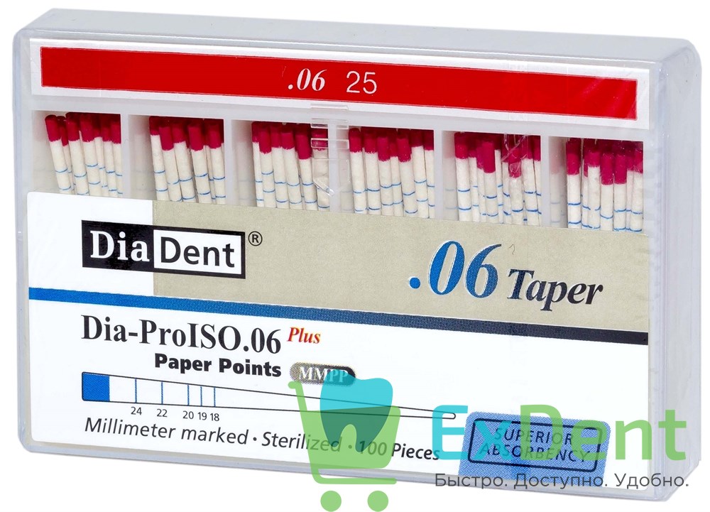 Бумажные штифты 06 №25 DiaDent для удаления влаги в канале (100 шт)
