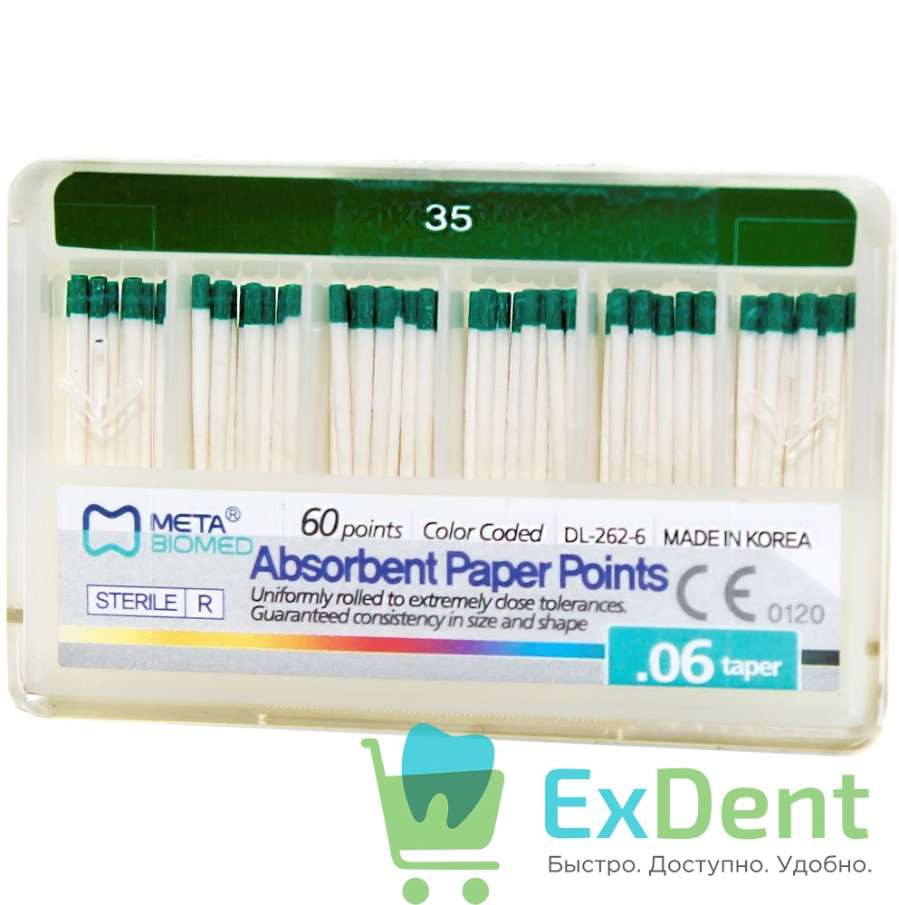 Бумажные штифты 06 №35 Meta - для удаления влаги в канале (60 шт)