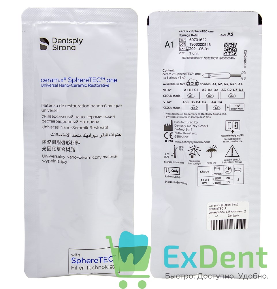 Сeram.x SphereTECone – универсальный нано-керамический композит светового отверждения на основе уникальной технологии сферического наполнителя SphereTEC, показанный для прямых и непрямых реставраций. Новая технология наполнителя представляет собой сочетание сферических частиц и оптимизированной матрицы смолы, что приводит к идеальным манипуляционным свойствам материала.