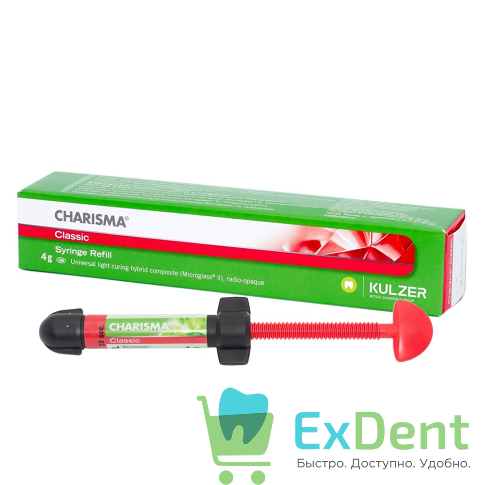 Charisma Classic — это светоотверждаемый микрогибридный композитный материал для стоматологических реставраций. Обладает высокой эстетикой, прочностью и рентгеноконтрастностью. Подходит для восстановления как передних, так и жевательных зубов.