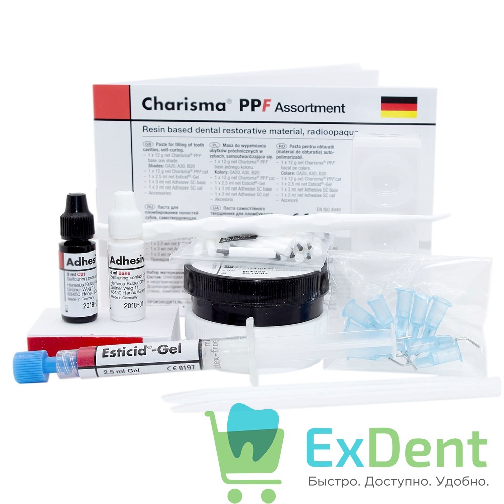 CHARISMA (ХАРИЗМА) PPF — самотвердеющая двухкомпонентная композитная система на основе Microglass для изготовления пломб, состоящая из базисной и каталитической пасты или жидкости.