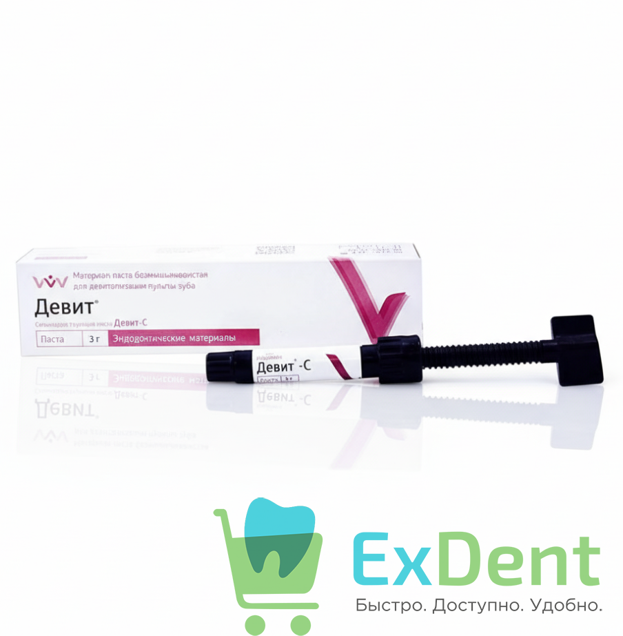 Применение пасты Девит — С обеспечивает пролонгированную девитализацию пульпы практически без раздражения и боли, а также исключает необходимость дополнительной обработки каналов с целью нейтрализации солей мышьяка, как в случае применения мышьяковистых паст.