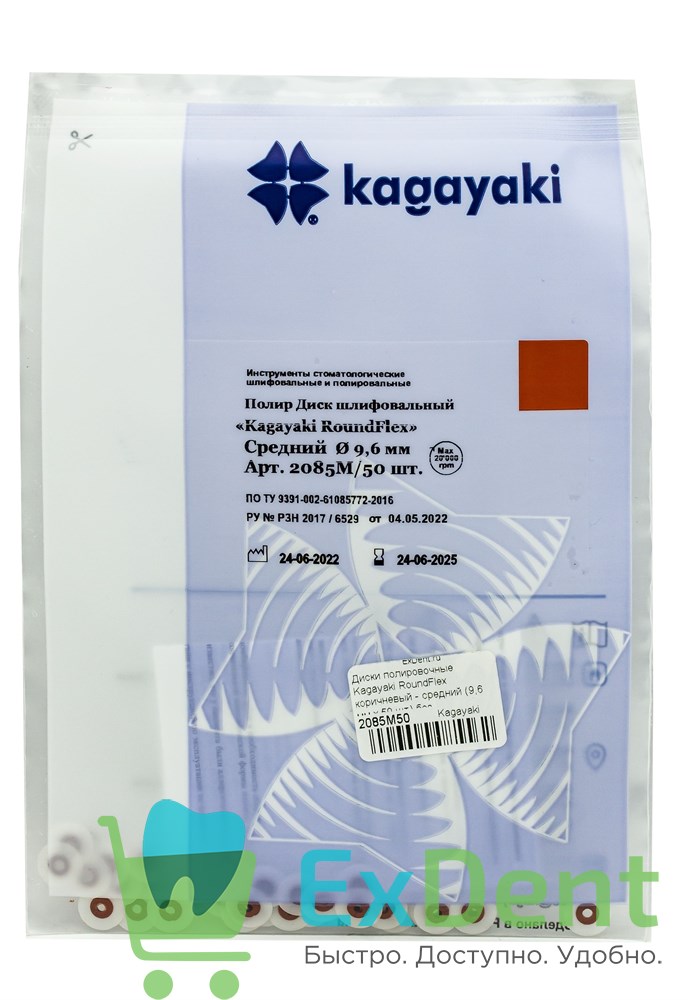 RoundFlex - диски шлифовальные, предназначены для формирования конечной, анатомической формы пломб, выравнивания шероховатостей и придания блеска, а также сглаживания перехода пломба-зуб. В систему Kagayaki RoundFlex™ входят диски с абразивными частицами различного размера и зернистости, для контурирования, финирования и полировки до зеркального блеска композитов, стеклоиономеров, амальгамы, полудрагоценных и драгоценных металлов.
