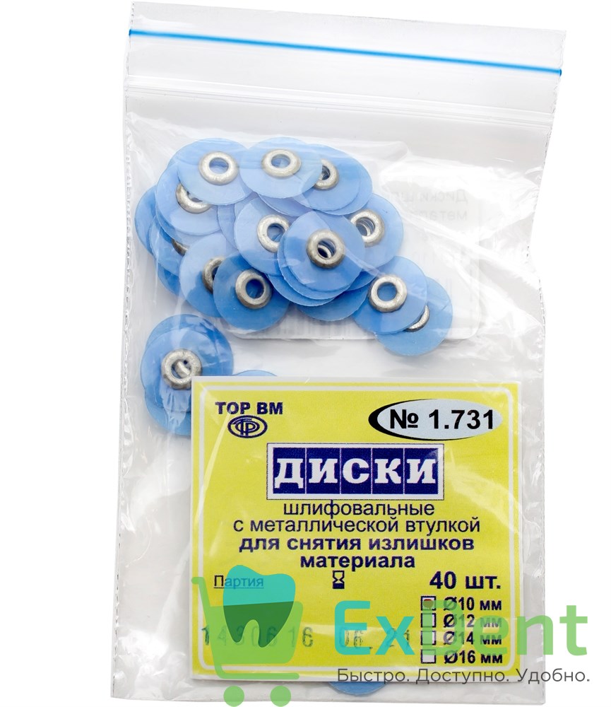 Диски шлифовальные с металлической втулкой синие, для снятия излишков материала, 10 мм (40 шт)