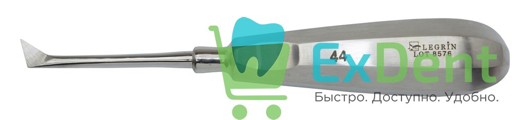 Штыковидный элеватор (элеватор Леклюза). Соединительный стержень элеватора штыкообразно изогнут (рис. 6.8, г). Рабочая часть (щечка) имеет копьевидную форму, сужается и истончается к концевому отделу. Одна поверхность щечки гладкая, другая — закругленная. Ручка круглая, более толстая в средней части, расположена перпендикулярно по отношению к соединительному стержню и рабочей части. За счет штыковидною изгиба продольная ось щечки и ось соединительного стержня расположены в параллельных плоскостях. Элеватор предназначен для удаления третьего нижнего большого коренною зуба.