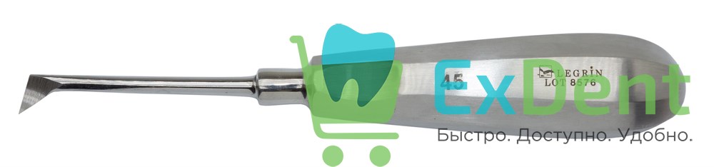 Штыковидный элеватор (элеватор Леклюза). Соединительный стержень элеватора штыкообразно изогнут (рис. 6.8, г). Рабочая часть (щечка) имеет копьевидную форму, сужается и истончается к концевому отделу. Одна поверхность щечки гладкая, другая — закругленная. Ручка круглая, более толстая в средней части, расположена перпендикулярно по отношению к соединительному стержню и рабочей части. За счет штыковидною изгиба продольная ось щечки и ось соединительного стержня расположены в параллельных плоскостях. Элеватор предназначен для удаления третьего нижнего большого коренною зуба.
