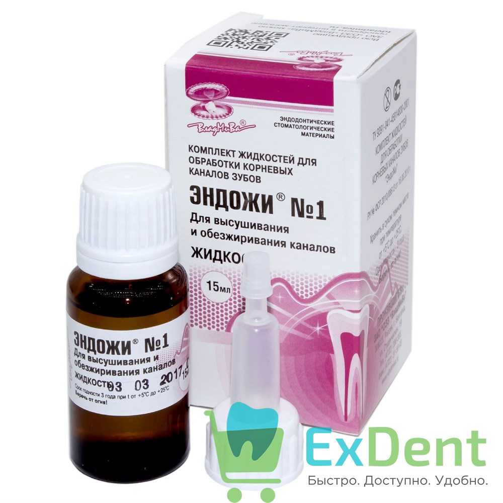 ЭндоЖи № 1 — для высушивания и обезжиривания каналов, не содержит диэтилового эфира и этанола, легко испаряется.
