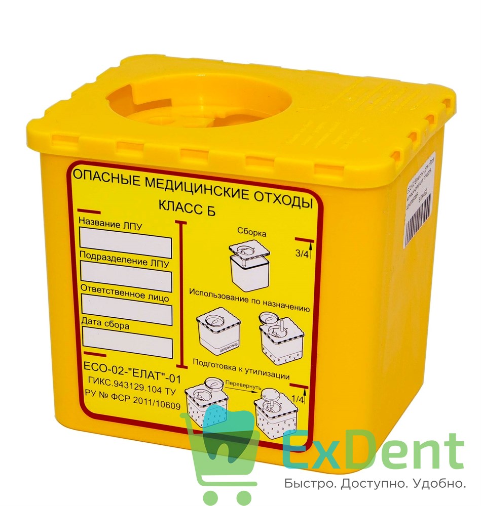 Емкость ЕСО-02 «Елат»-01 для сбора колюще-режущих мед. отходов, одноразовая