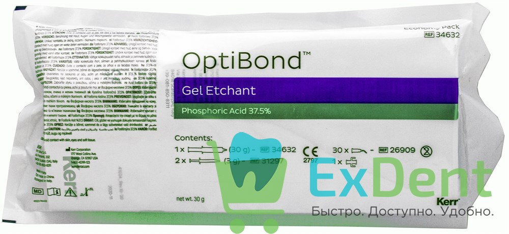 34632 Протравочный гель Gel Etchant, экономичная упаковка: большой шприц (30 г), 2 пустых интраоральных шприца, 30 насадок, 1 соединитель для интраоральных шприцев