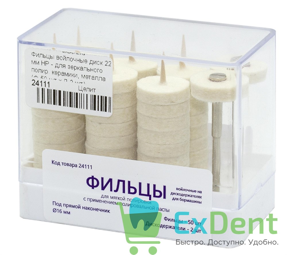 Фильцы войлочные диск 22 мм HP - для зеркального полир. керамики, металла (Ф-50 шт х Д-2 шт)