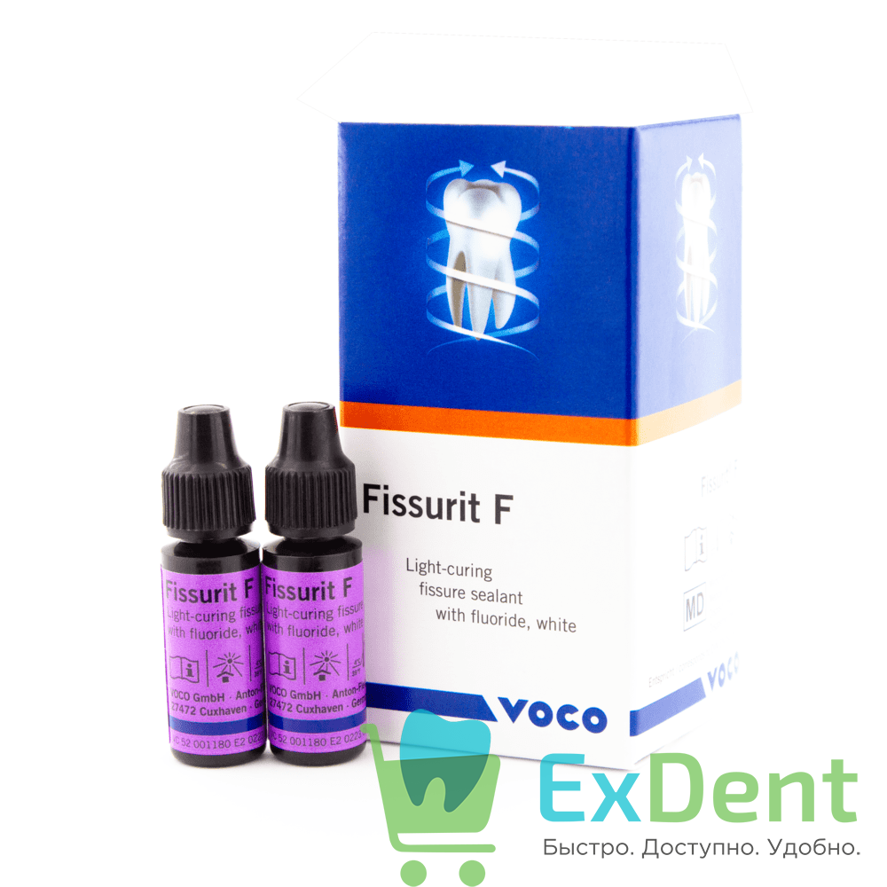 Фиссурит F – это материал для герметизации фиссур. Он выпускается в виде жидкости во флаконах, а также в в VOCO-NDT®-дозаторе. «NDT®» обозначает Non-Dripping- («не капающую»)- технологию. NDT®-дозатор с противокапельной системой позволяет держать наготове такие высокотекучие материалы как напр., Фиссурит F, что значительно облегчает работу с пациентом. Благодаря дозатору Фиссурит F с противокапельной системой, в прошлом остались подтекание материала после применения дозатора, потеря материала и «чрезмерно заполненные» фиссуры. Кроме того, Фиссурит F содержит фторид для торможения развития кариеса.