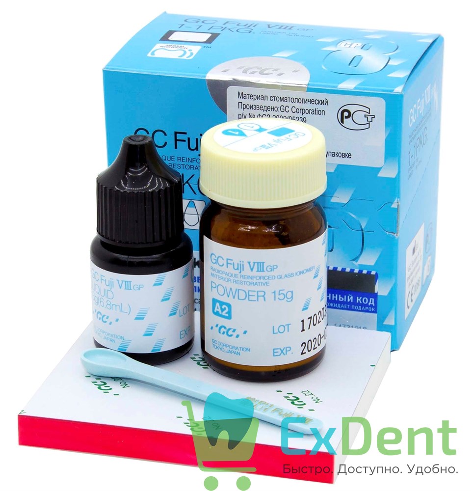 ДЖИ СИ Фуджи VIII ДЖИ ПИ. Цемент самоотверждаемый, усиленный стеклоиономерный, для реставраций. Порошок/Жидкость (Упаковка 1-1, 15 г порошка, 6.8 мл жидкости.